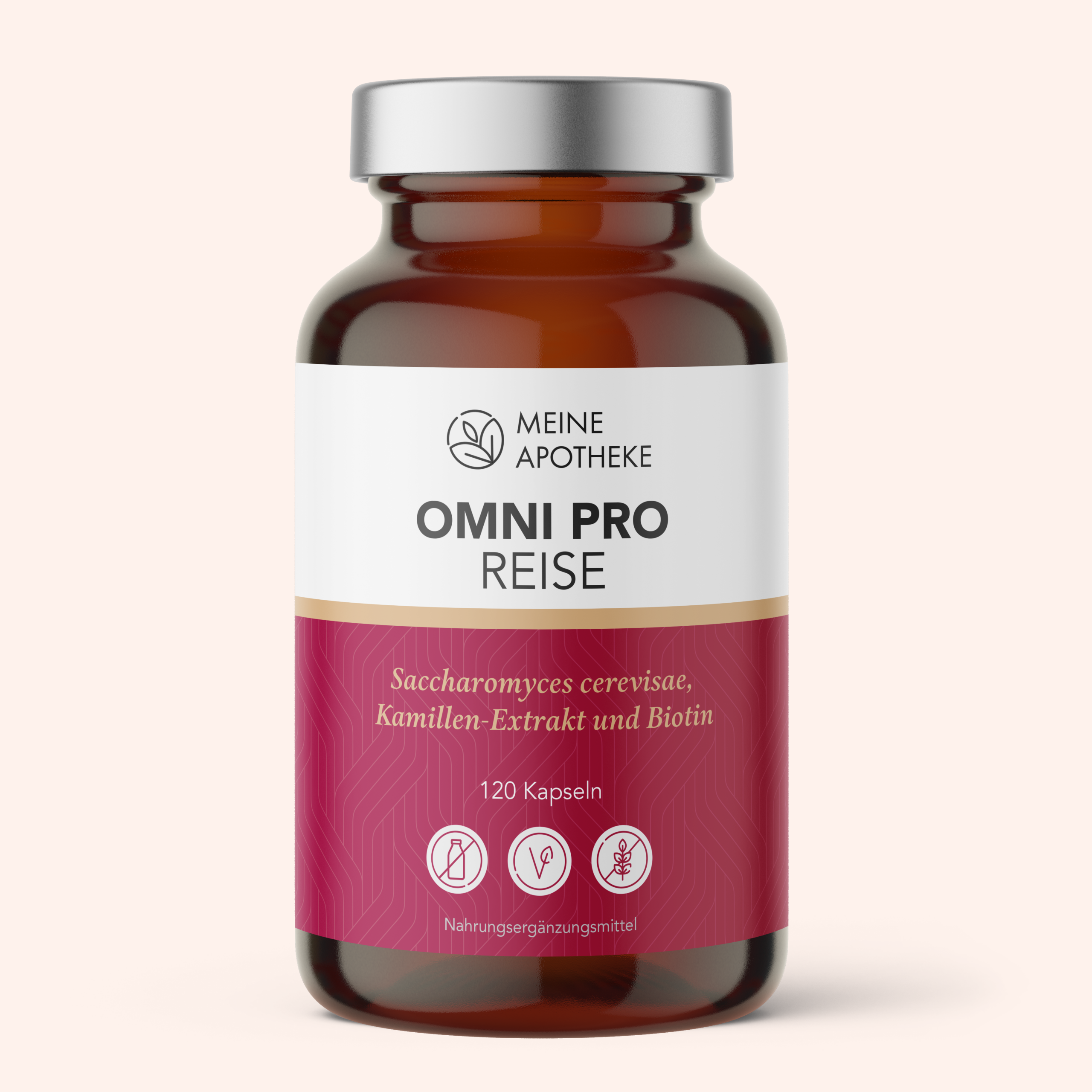 Omni Pro Reise enthält eine 3-fach Kombination aus Saccharomyces cerevisae, Kamillen-Extrakt, & Biotin.