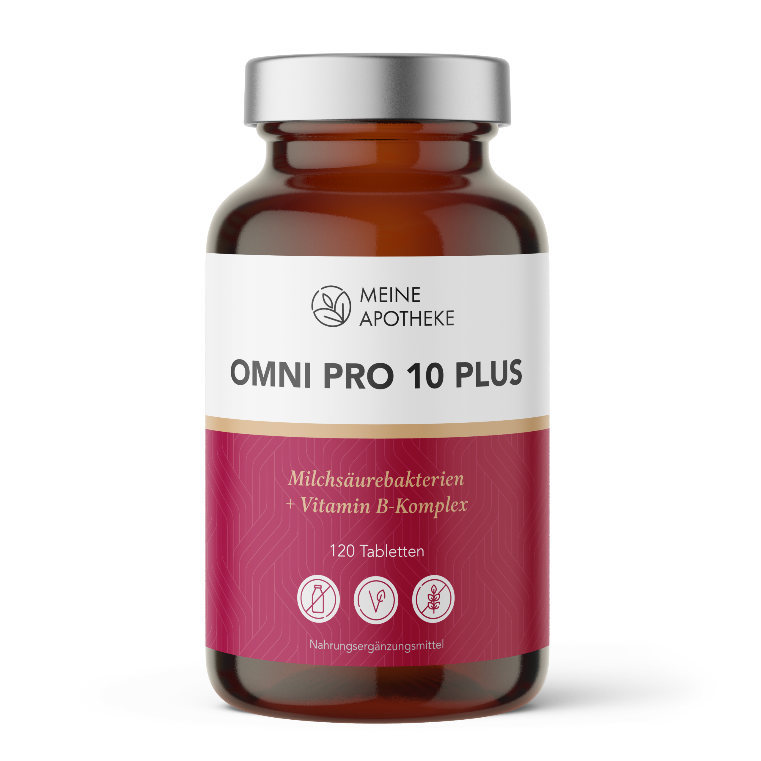 OMNI PRO 10 PLUS basiert auf einer gezielt ausgewählten Milchsäurebakterien-Kombination, sowie einer Kombination an B-Vitaminen. Zusätzlich enthält die Rezeptur L-Glutamin und Inulin.